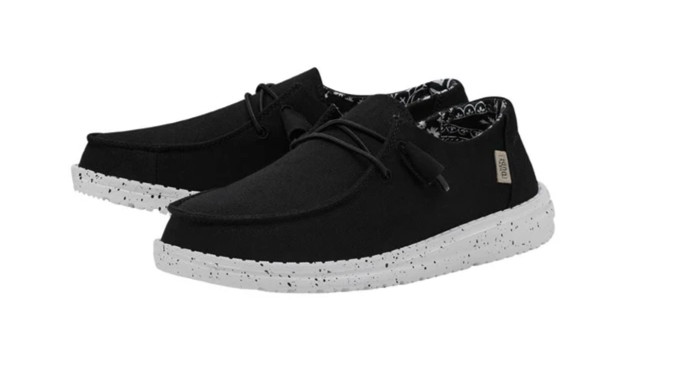 Goes by Wendy. Should really be called Wendy Goes-With-Everything. Slip into signature HEYDUDE™ construction atop a foot-cradling, foam insole. Add a lightweight foam outsole and top it off with a textile upper and stretchy elastic laces to make heading out easy as a breeze.